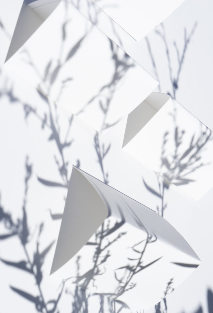 With A Legacy of Shadows, she captures shadows of plants falling on snow and white paper, imposing shaped fragments of what is seen to reveal parts of nature that are overlooked by our too rapid glance. Within these fragmented shadows, it is not the literal image of the object that is important, but the shadow that forces our imagination to consider what we are seeing.