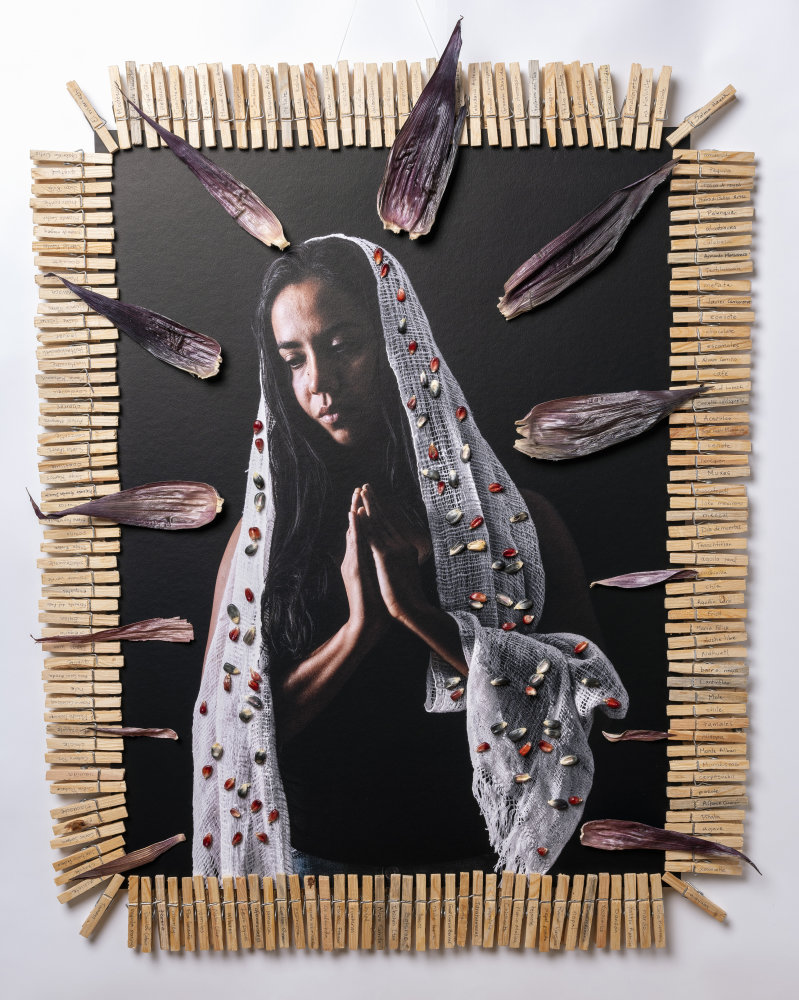 Lou Peralta’s portraiture project “Disassemble” seeks out people from different regions of Mexico that reflect the country’s varied cultural heritage and celebrates the diverse genetic make-up of their physical characteristics.  Peralta seeks to build appreciation for a new Mexican identity and overcome certain stereotypes and preconceptions. The images are embedded, sewn, and woven with materials that Peralta says are the “DNA” of Mexican life from the regions that the people photographed call home. She feels her images will create a new energy and consciousness regarding what it means to be Mexican.