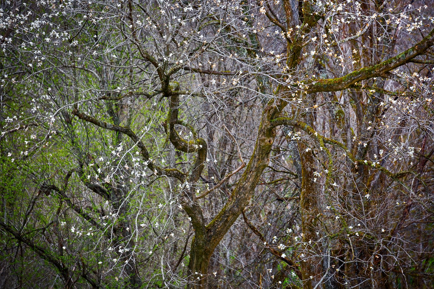 Metamorphosis #153, a starry pattern of cherry blossoms, draws us into this dense, gnarled, tree-like visual fairy tale. One might suspect that the denseness of living conditions in a country like Japan imprints a view in composition different than what one might feel living in the vastness of West Texas. Vastness of space does not predefine Ng’s approach, but she is conscious in her compositions that space affects composition. Her images range from high, vast panoramic elevations to the dense forest in Metamorphosis #153. There is a feeling of gaiety and adventure here. We might even feel invited to wander deeper and deeper into the swirl of these cherry blossoms, despite how anticipated their arrival, and how ephemeral their beauty. Cherry blossoms only bloom for one to two weeks each year and then decline and are gone. Yet, we seize, with anticipation, this interlude between bare trees and a short explosion of white to pink beauty.